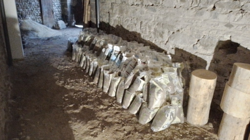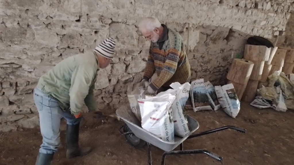 155 sacs de gravas, poussière et sciure et c’est pas fini!
