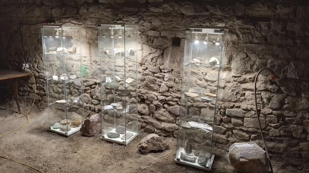 L’exposition présentera, sur plus de 210 m² de caves voûtées, principalement des roches et des minéraux du Val d’Allier.
