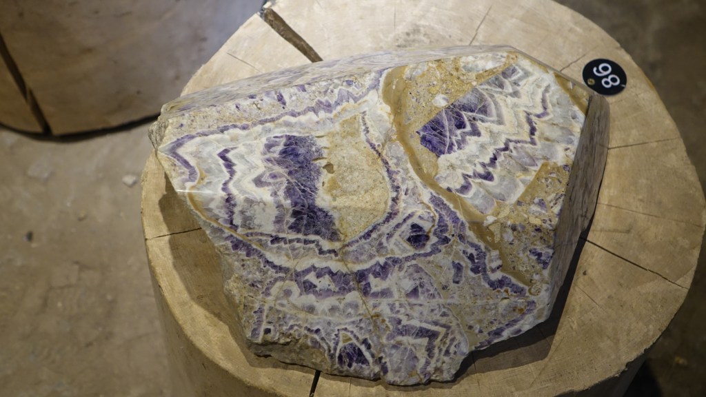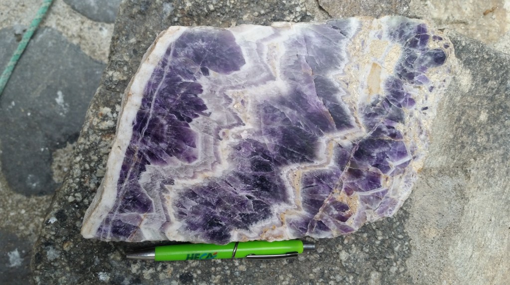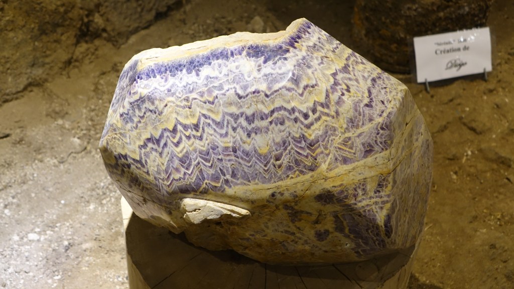 Améthyste en chevron, Condat les MontboissierAméthyste, Chaméane Améthyste, Escout/Le-Vernet-la VarennesGros bloc d’améthyste en chevron (68 kg) Le Jaladis/Condat-les-Montboissier