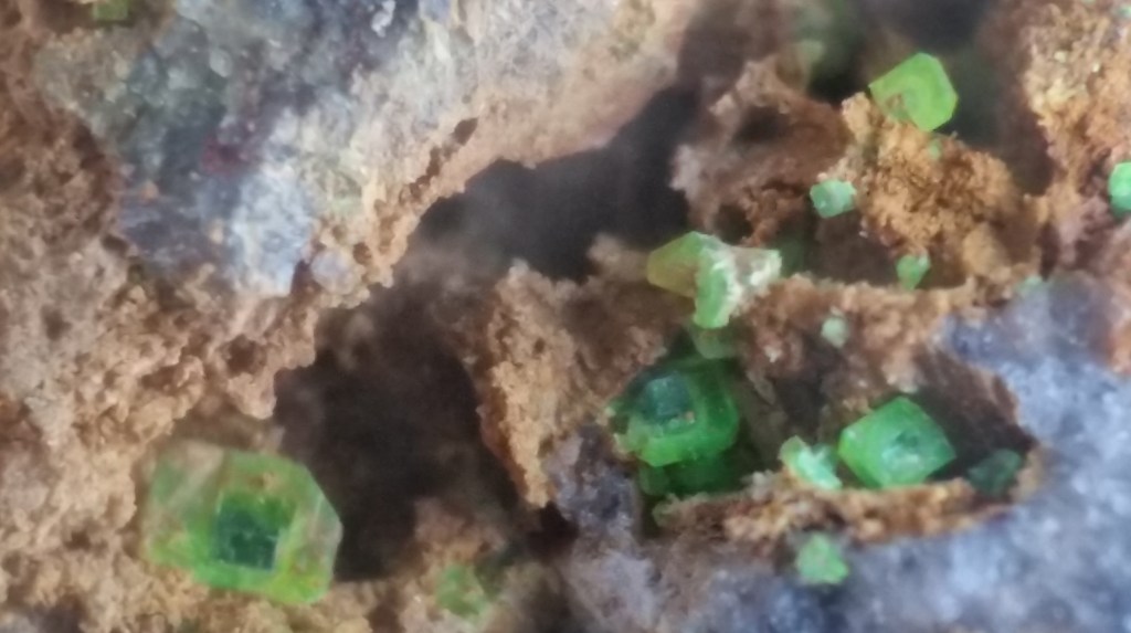 Fluorine dans la galerie de la TouretteFluorite en boxwork recouvert de quartz, Céaux-d’AllègreFluorite verte à samarium, Marsanges/Langeac