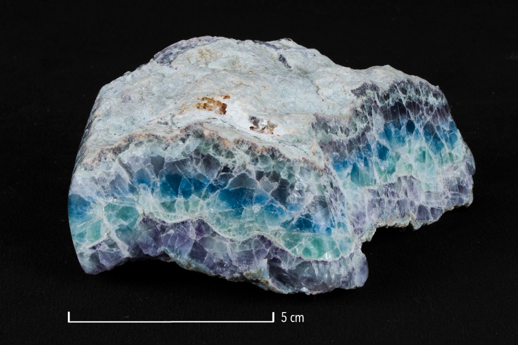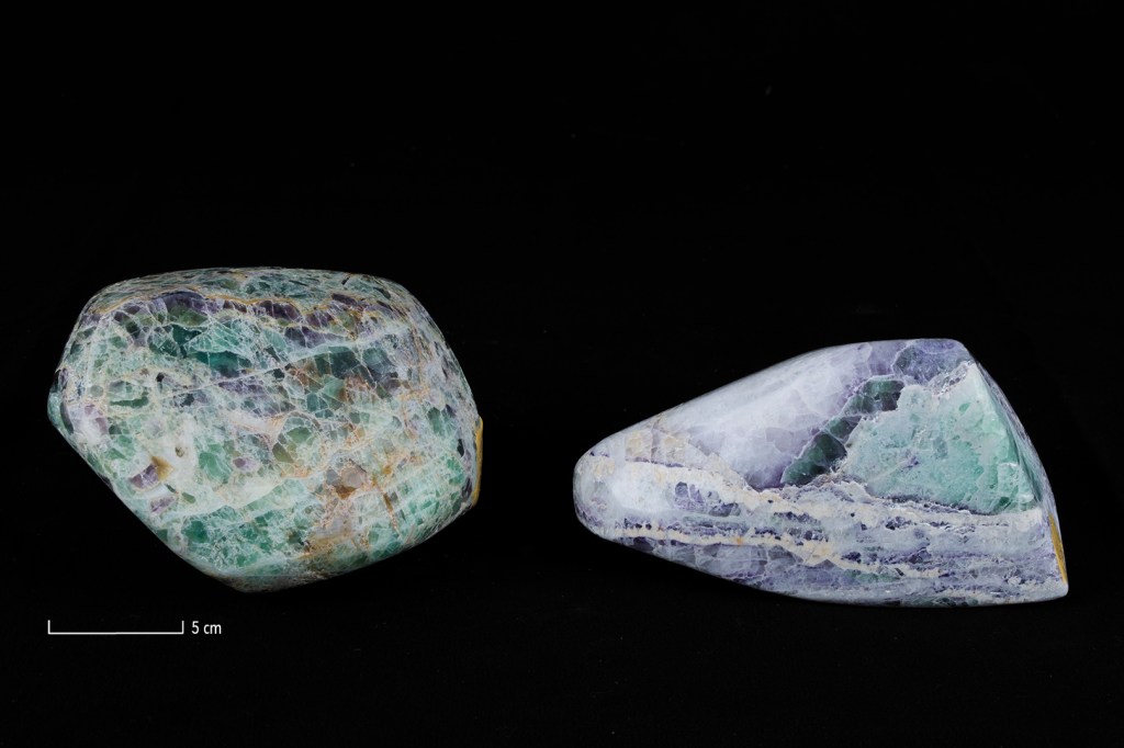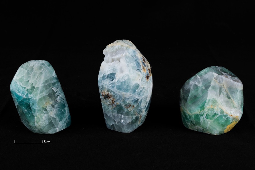 Fluorite bleutée, Mine de la TouretteFluorite rubanée multicolore, Barlet/LangeacDifférentes fluorites polies