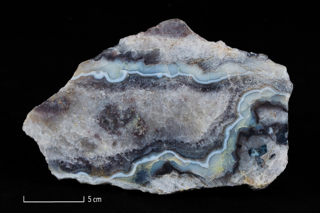 Calcédoine à niveau d’opale bleu, La Rodde/Ally Calcédoine ocre et chapmanite, La Bessade/Chailhac