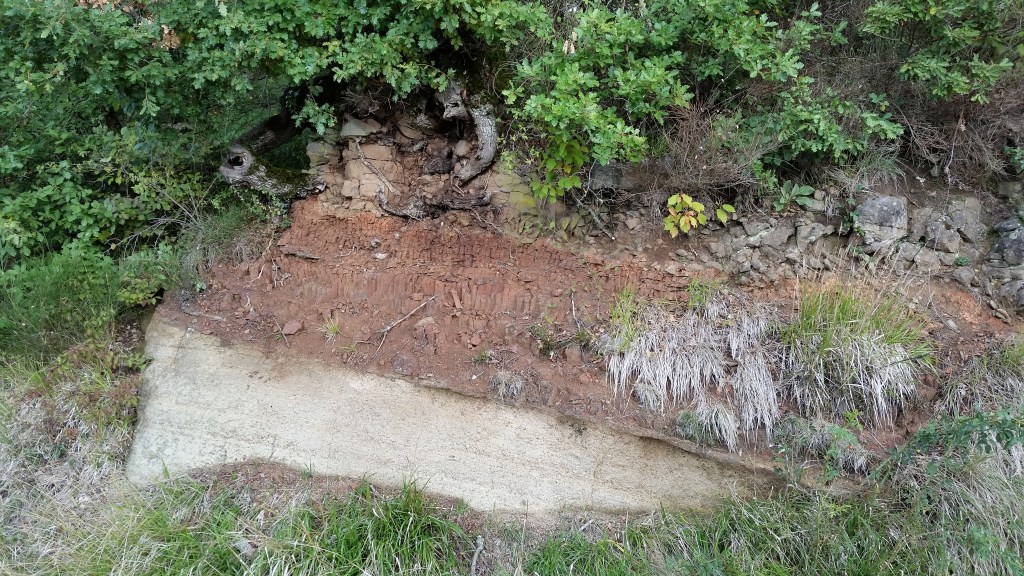 Paléosol rouge entre 2 formations volcaniques au-dessus du basalte et en-dessous du maar, Esplot de Cerzat