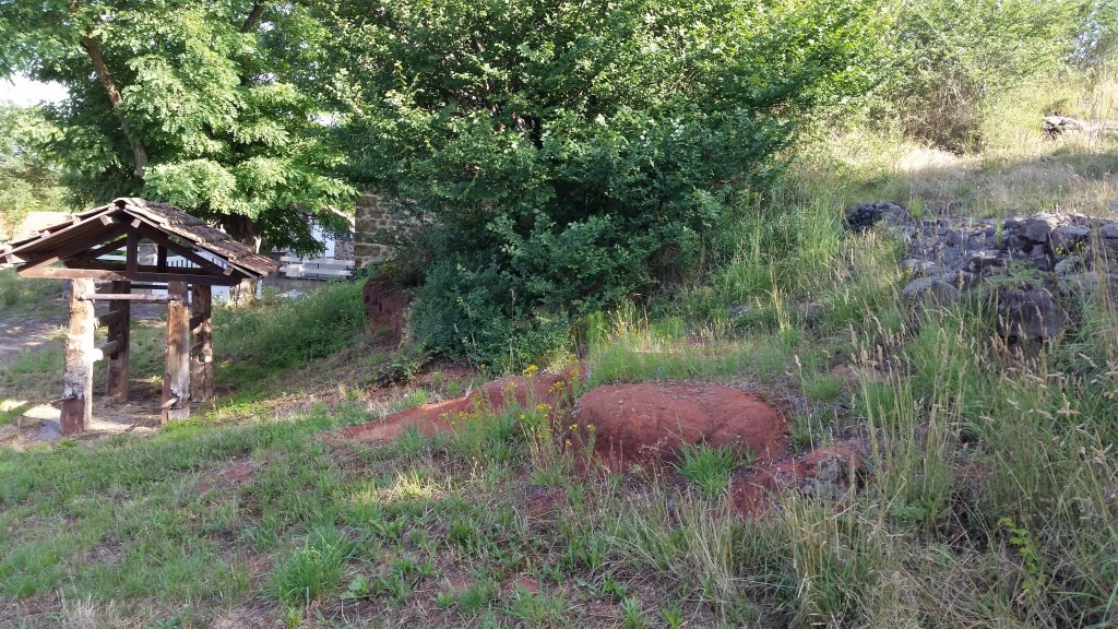 Maison construite en paléosol induré de l’Éocène de la base du bassin de Brioude, Buze/LavaudieuP&léosol rouge induré Buze/Lavaudieu