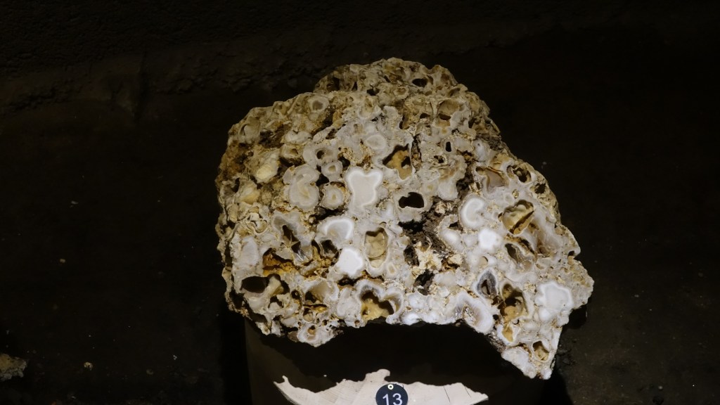 Argiles de l’Oligocène oranges puis grises et calcaire blanc au sommet, Butte de Monlaison/BeaumontStromatolithe 63 carrière de Grandaillat/Clermont-Ferrand